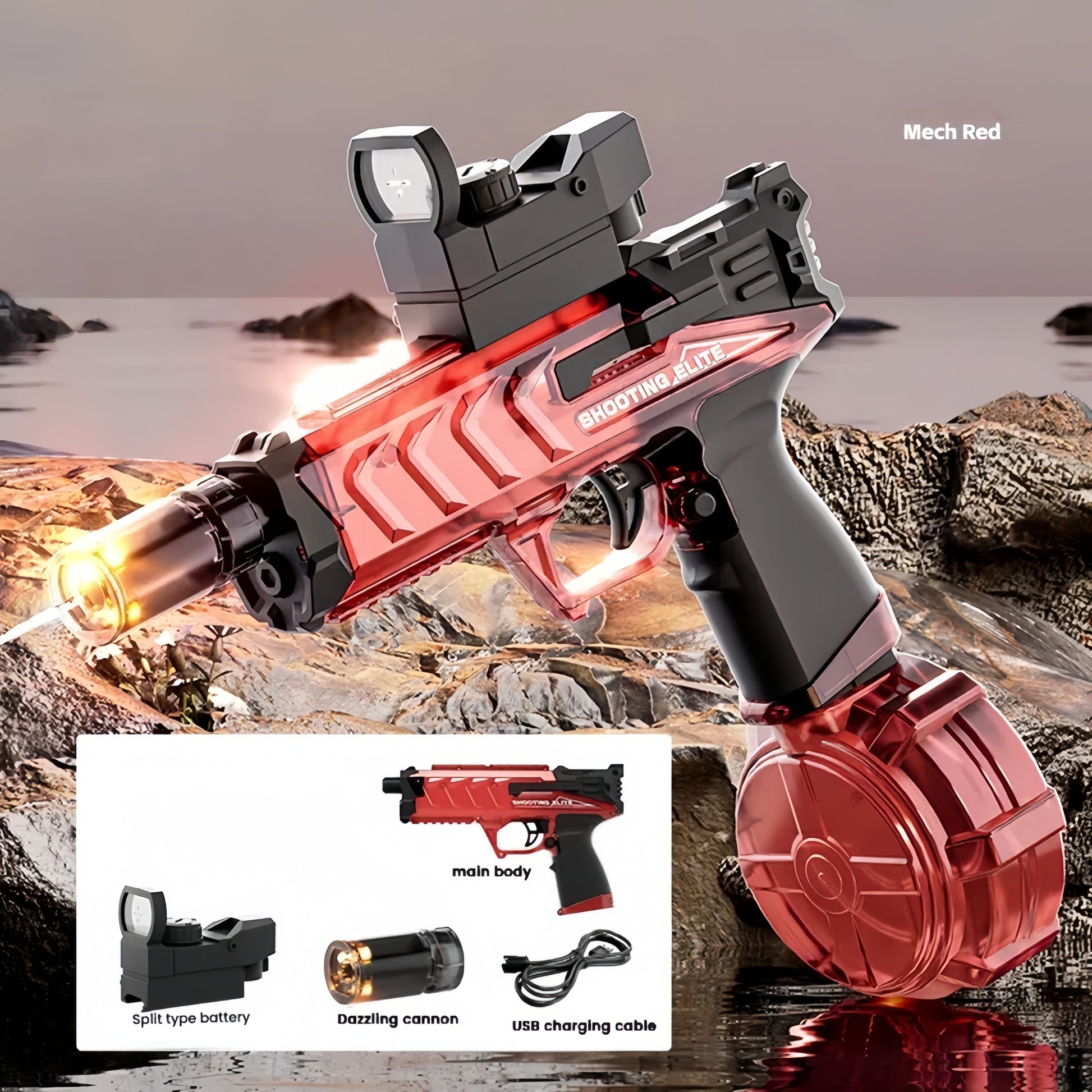 【Dynamic LED Light-Up Nozzle for Ultimate Battle Thrill】Take your water battles to the next level with our illuminated nozzle design! The built-in LED lights synchronize with every shot, creating a stunning visual effect that makes each blast more exciting. Whether you're playing under the sun or having an intense nighttime water fight, the glowing water stream ensures an immersive and electrifying experience like never before!
