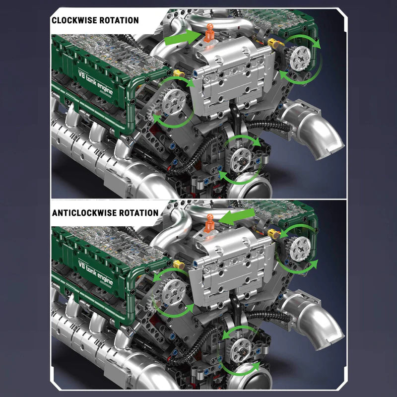Introducing the Motorized V8 Tank Engine, a robust and intricate model that brings the inner workings of military-grade engineering to your fingertips.